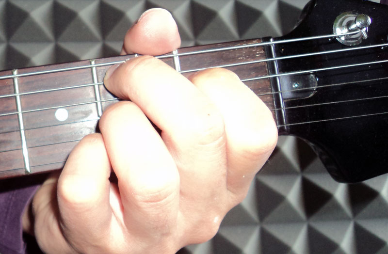 Assegure-se que não abafa nenhuma das cordas soltas do acorde. Não se esqueça que a sexta corda deve ser abafada.
